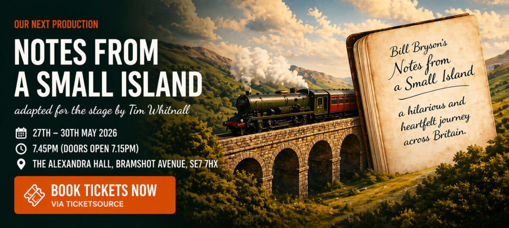 We are an amateur theatre group based at the Alexandra Hall, Bramshot Avenue, London SE7. Charlton is a small area in the London Borough of Royal Greenwich, nestled among Woolwich, Blackheath and Greenwich. We have members from across South-East London and even Kent. We produce at least three shows a year, usually in half-term and we showcase a wide variety of theatrical forms and eras.